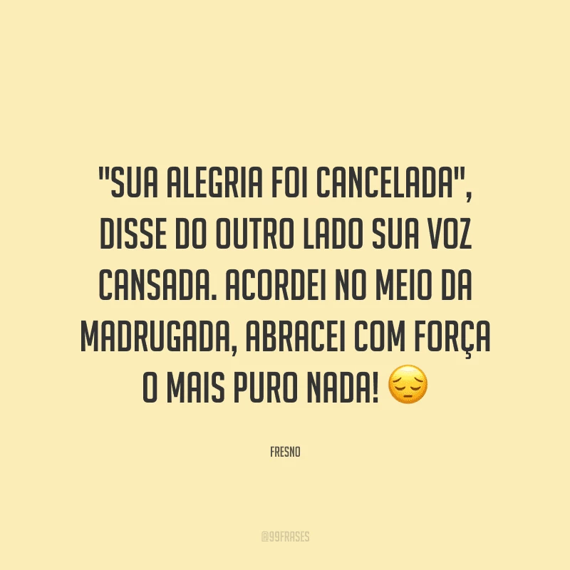 "Sua alegria foi cancelada", disse do outro lado sua voz cansada. Acordei no meio da madrugada, abracei com força o mais puro nada!